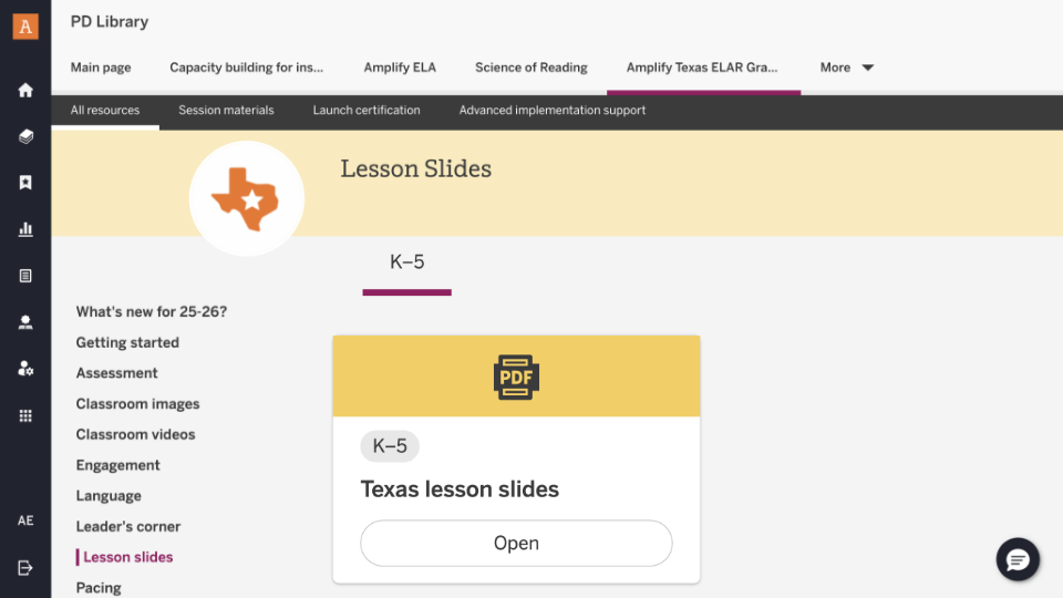 If you’re an Amplify Texas K–5 ELAR/SLAR user, we hope having access to daily slides for every unit and lesson has been helpful. We realize a few links were incorrect and we apologize. Those links have been fixed, and you should now have access to everything you need. The Amplify Texas K–5 ELAR/SLAR slides can be found once you’ve logged in to the Teacher Resource Site on the Amplify Texas PD Library.