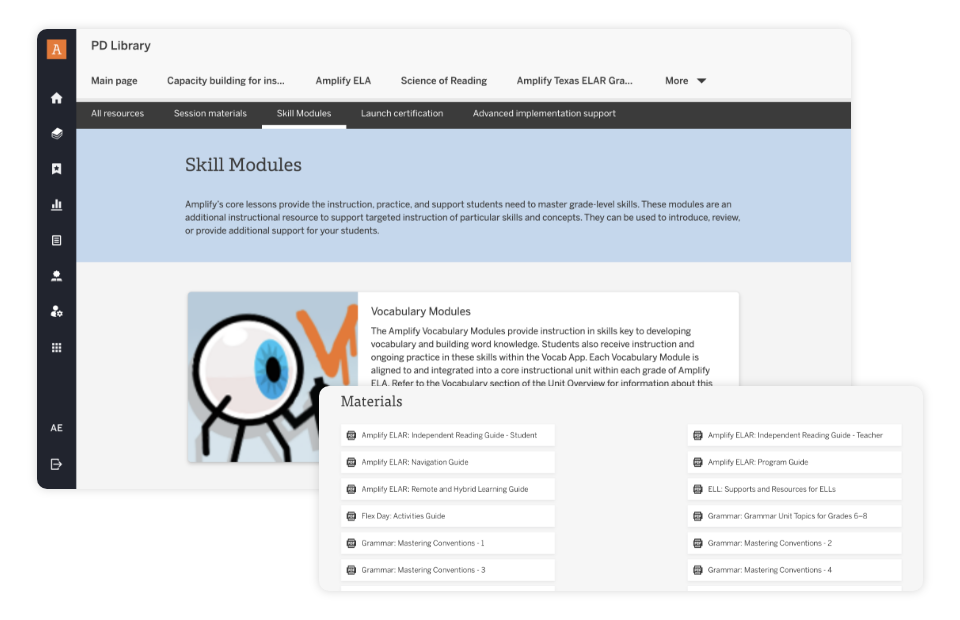 Check out our Vocabulary Modules and Text Analysis Modules in the Amplify TX PD Library.